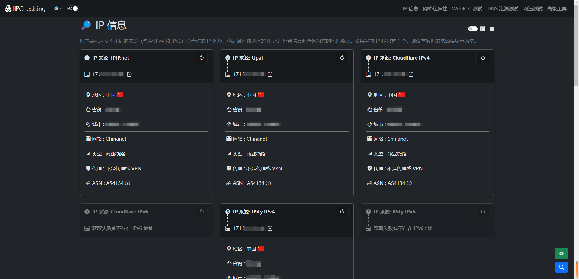 假如你不想部署到本地,也可以直接体验官方网址:https://ipcheck.ing