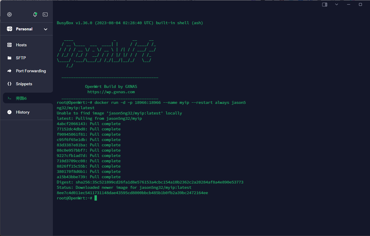 docker run -d -p 18966:18966 --name myip --restart always jason5ng32/myip:latest